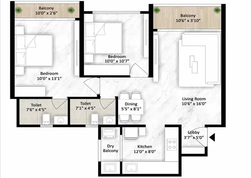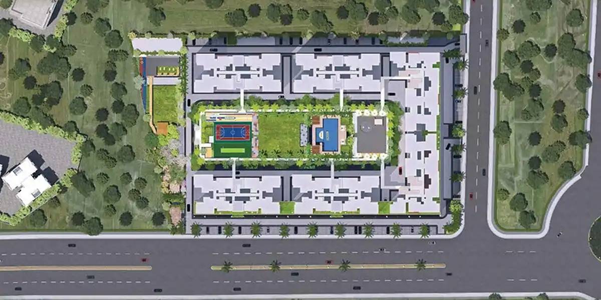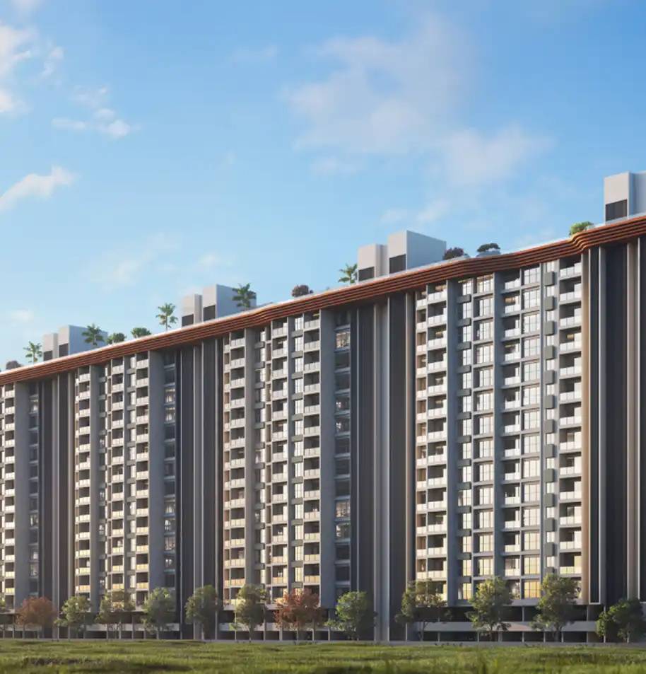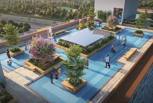 Boasts a 32,000 sq. ft. landscaped podium and 50,000 sq. ft. of in-built amenities. Sky Walk and Sky Lounge for premium lifestyle experience.